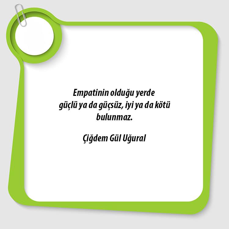 Empati, kiÅŸinin kendisini karşısındaki kiÅŸinin yerine koyarak olaylara onun bakış açısı ile bakabilmesi, onun duygu ve düÅŸüncelerini doÄŸru olarak anlaması, zihninde oluÅŸan bu anlayışı karşısındakine doÄŸru bir biçimde iletmesidir. Empati aynı zamanda davranışların altında yatan niyeti ve amacı daha doÄŸru tahmin etmeyi saÄŸladığı için, iletiÅŸim sürecinde yaÅŸanan yanlış anlamaları en aza indirerek, yükleme yanlılıklarından kaynaklanabilecek saldırganlık davranışlarının da azalmasını saÄŸlamaktadır. Empatinin geliÅŸimi Devamı için tıklayınız...