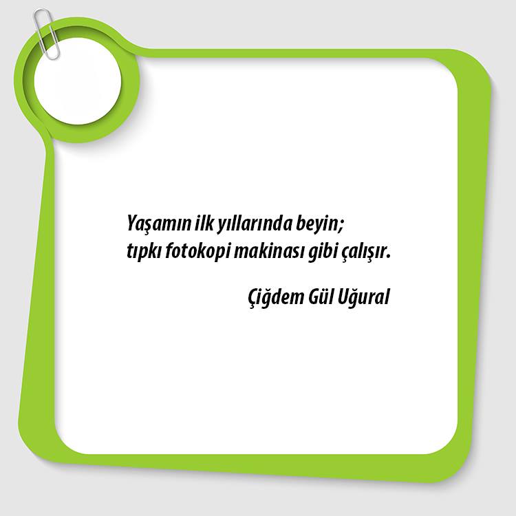 İnsanın çocukluÄŸu anavatanı'dır. Çocuklarımızın çocukluklarını doyasıya yaÅŸaması; onlara yaÅŸamları boyu coÅŸku saÄŸlar. Saygı ve sevgilerimle. ÇiÄŸdem Gül UÄŸural  Devamı için tıklayınız...