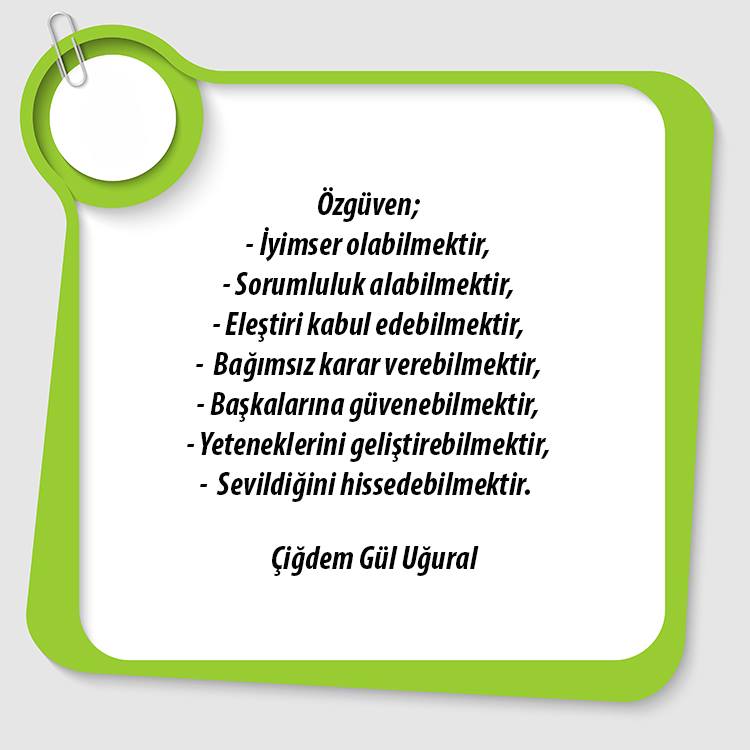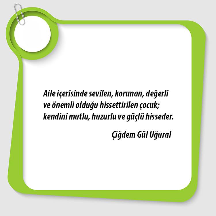 YaÅŸamın temelleri çocukluk yıllarında atılır. Sevgi, güven, ÅŸefkat, ait olma çocukların temel ihtiyaçlarıdır. Saygı ve sevgilerimle. ÇiÄŸdem Gül UÄŸuralDevamı için tıklayınız...